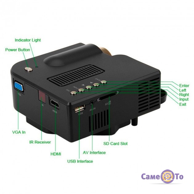 Вивід зображення комп'ютера здійснюється через роз'єм VGA або HDMI - пристрій також підтримує стандартний вхід AV. Що стало відмінним рішення для офісу і комфортного перегляду вдома. У будинку портативний проектор копія UNIC UC28 може стати чудовою альтернативою монітора, тим більше що проекція набагато більша за звичайний монітор. Завдяки вбудованому виходу HDMI з'явилася можливість підключати ігрові консолі, цифрові приставки, супутникове телебачення, смартфони, планшети та інші гаджети. Тепер завдяки проектору ви можете переглядати улюблені канали на великому екрані.