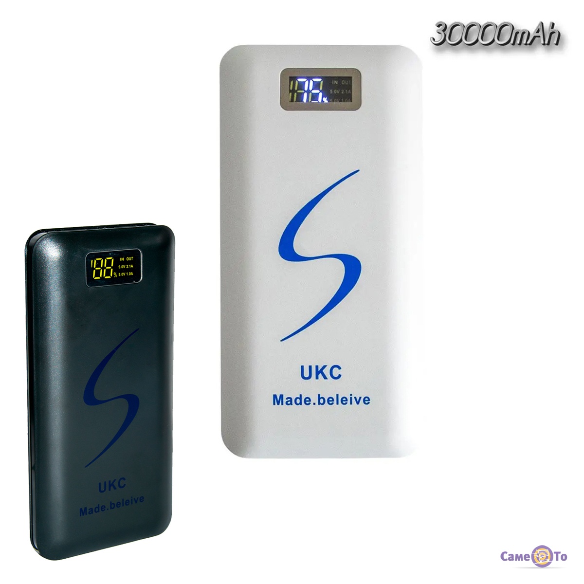 Одним з важливих переваг цього зарядного пристрою є його компактні розміри, завдяки яким його можна носити з собою всюди в сумочці або портмоне. Корпус приладу виконаний зі стійкого і надійного пластика, а також оснащений корисним дисплеєм, на якому можна побачити інформацію про заряд акумулятора. Ємність портативного переносного зарядного пристрою UKC Power Bank становить 30000 mah LCD, а це значить, що він може кілька разів зарядити Ваш мобільний телефон сповна.