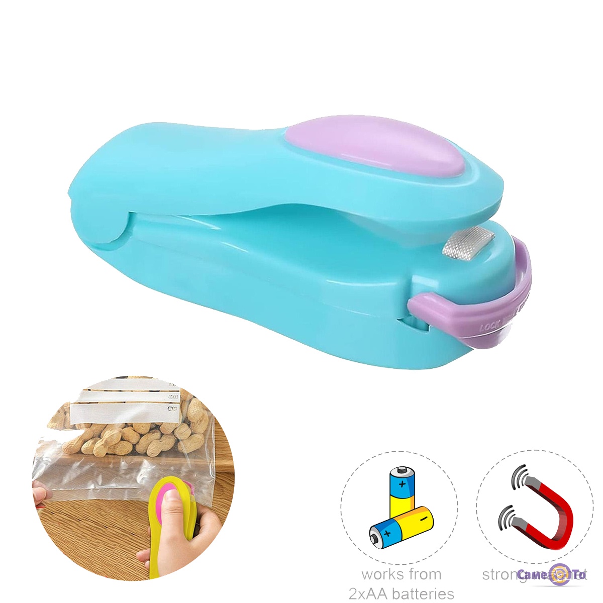 Цей прилад для запаювання пакетів має невеликі розміри (всього 10x4x4.5 см і вага в 40 грам). Такий невеликий апарат легко втратити в надрах квартири або будинку, тому в зварювальнику пакетів від виробника Саме То передбачений вбудований на задній частині корпусу магніт, який кріпиться до будь-якої металевої поверхні для зберігання пристрою на видному місці (наприклад, на холодильнику).