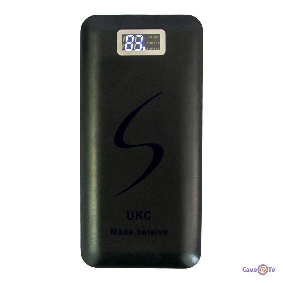 Одним из важных достоинств этого зарядного устройства являются его компактные размеры, благодаря которым его можно носить с собой везде в сумочке или портмоне. Корпус прибора выполнен из устойчивого и надежного пластика, а также оснащен полезным дисплеем, на котором можно увидеть информацию о заряжаемом аккумуляторе. Емкость портативного переносного зарядного устройства UKC Power Bank составляет 30000 mah LCD, а это значит, что он может несколько раз зарядить Ваш мобильный телефон сполна.