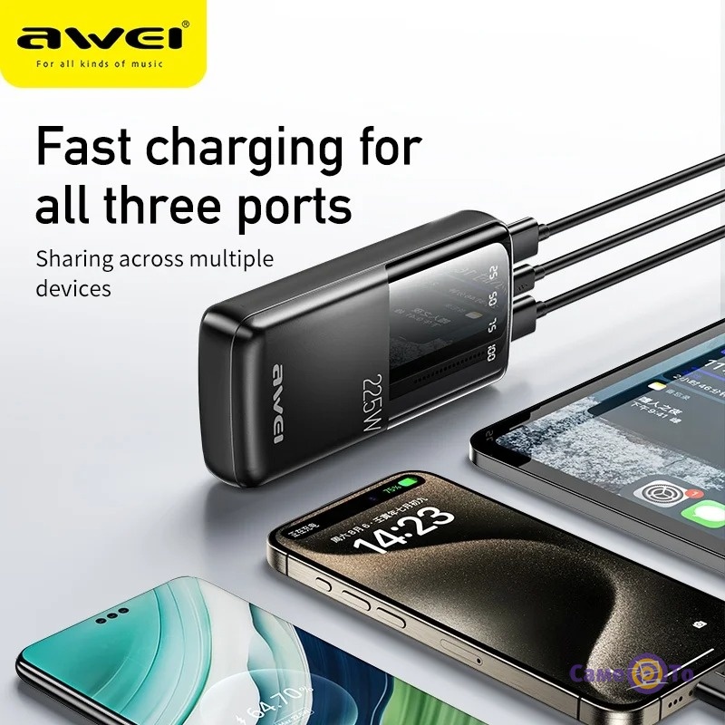 Внешний аккумулятор Awei P13K — это надежное и мощное решение для тех, кому важно всегда оставаться на связи. Благодаря внушительной емкости 20000 мАч, этот повербанк способен зарядить современный смартфон до 4-5 раз, что делает его незаменимым помощником в длительных поездках, походах или во время отключений электроэнергии. Поддержка технологии быстрой зарядки мощностью 22.5 Вт позволяет восстанавливать энергию ваших гаджетов в несколько раз быстрее, чем обычные накопители.