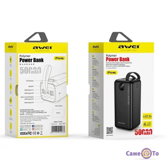 Повербанк AWEI Power Bank P114k на 50000 mAh, Чорний – потужний та надійний повербанк для роутера, модему та інших пристроїв.