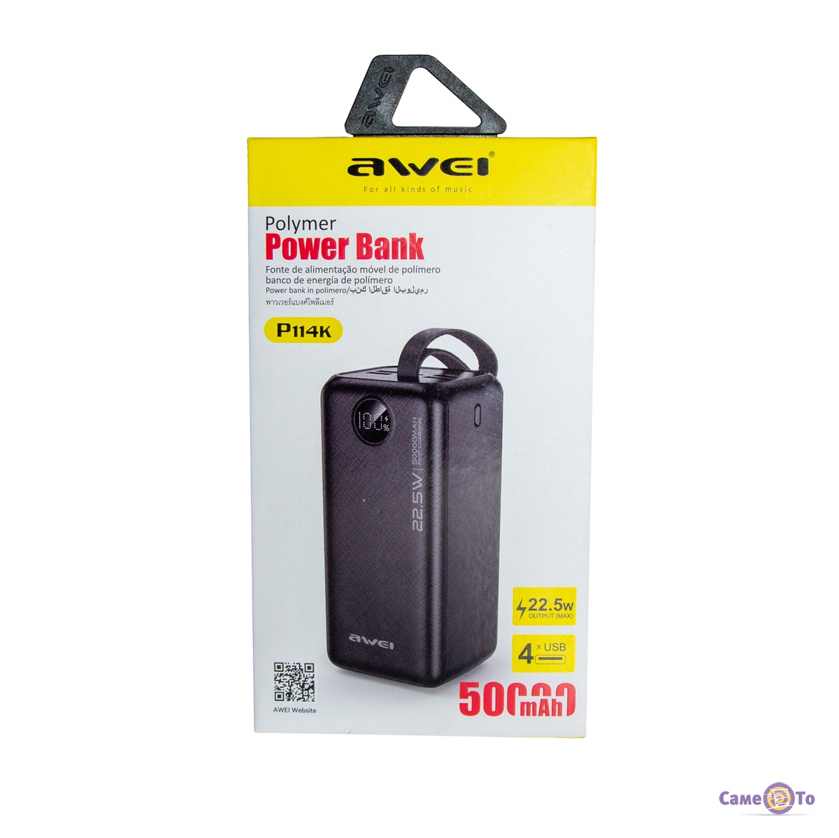 Повербанк AWEI Power Bank P114k, 50000 mAh Чорний