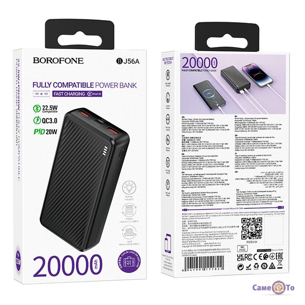 Power bank Borofone 20000 mAh BJ56A з адаптером для заряджання 33W та кабелем Type-C – ідеальний комплект для підтримки заряду ваших пристроїв.