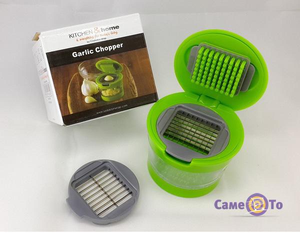 Незалежно від того, яку кількість часнику потрібно подрібнити - пару зубчиків або цілу купу продукту, потрібен вам дрібний помел або більші шматочки - всі ці завдання з легкістю допоможе вирішити це зручне пристосування. Важлива перевага Гарлік Чоппер полягає ще й в тому, що він впорається не тільки з часником, але також з цибулею, яйцями, маленькою картоплею і безліччю інших продуктів. Тепер будь-який салат можна приготувати за лічені хвилини, при цьому руки будуть чистими, а часточки або шматочки однакового розміру. Цей компактний подрібнювач - надійний помічник, який не займе багато місця в кухонному приміщенні і простий у догляді. Мити його можна як руками, так і в автоматичній посудомийці. Корпус виконаний з якісного і міцного пластику, а два змінних леза в комплекті дозволять продовжити термін служби на тривалий період часу.
