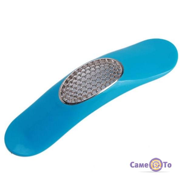 Конструкція преса для часнику до банальності проста. Але в цьому випадку працює принцип – все геніальне просто. Вона являє собою невелику вигнуту планку з міцного харчового пластику, посередині якої є спеціальна вставка з нержавіючої сталі з безліччю отворів. Крізь них проходять частинки зубчика, коли Ви його роздавлюєте.