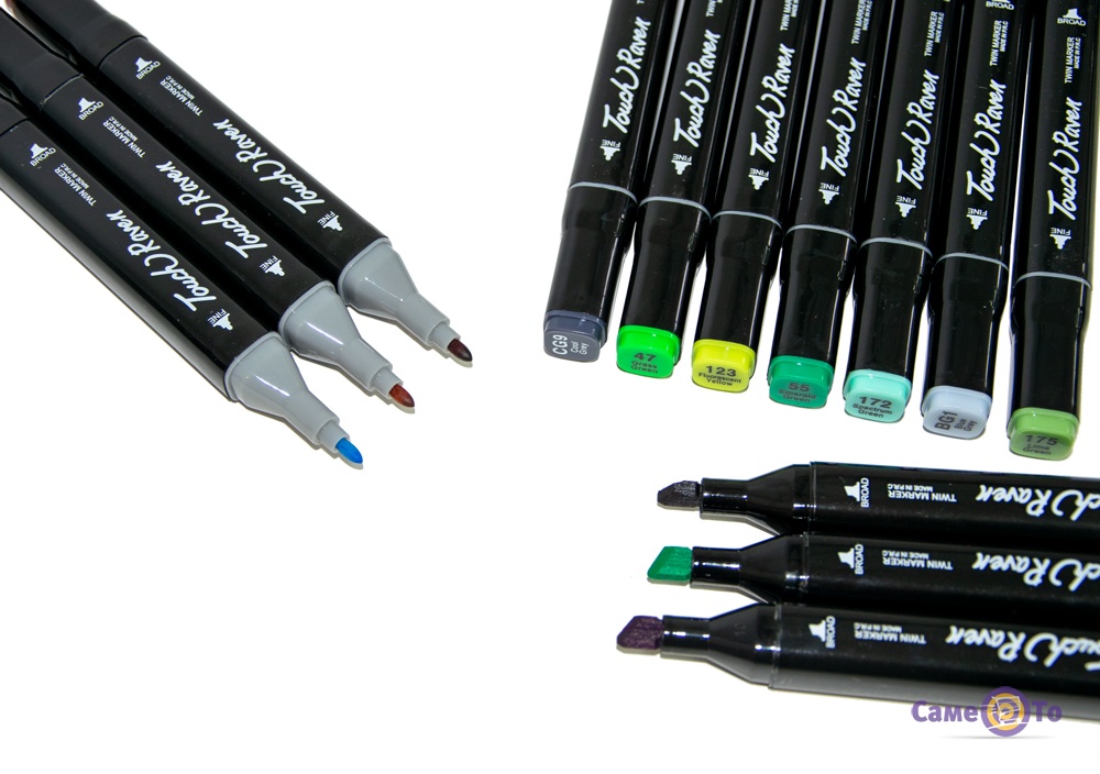 Изготовлены маркеры в пластмассовом корпусе, которые очень удобно держать в руке при создании рисунка. Колпачки фломастеров хорошо закрываются, тем самым не пересыхают и не портятся при не пользовании ими. Для удобства определения на подобии пера концы маркеров покрашены различным цветом. Каждый отдельный фломастер содержит личный цифровой код, который нанесен на колпачок изделия. Чернила сделаны на спиртовой базе, за счет этого отлично впитываются в бумагу, не оставляя при этом непонятных разводов. Иногда под белый лист бумаги можно подкладывать плотный картон, чтоб рисунок казался более четким и ярким. Цвета можно смешивать между собой, переход цветов красивый. Купить фломастеры для рисования можно в качестве подарка как ребенку, так и взрослому. Такой необычный набор сможет подарить необычные впечатления и эмоции от создания ярких рисунков.