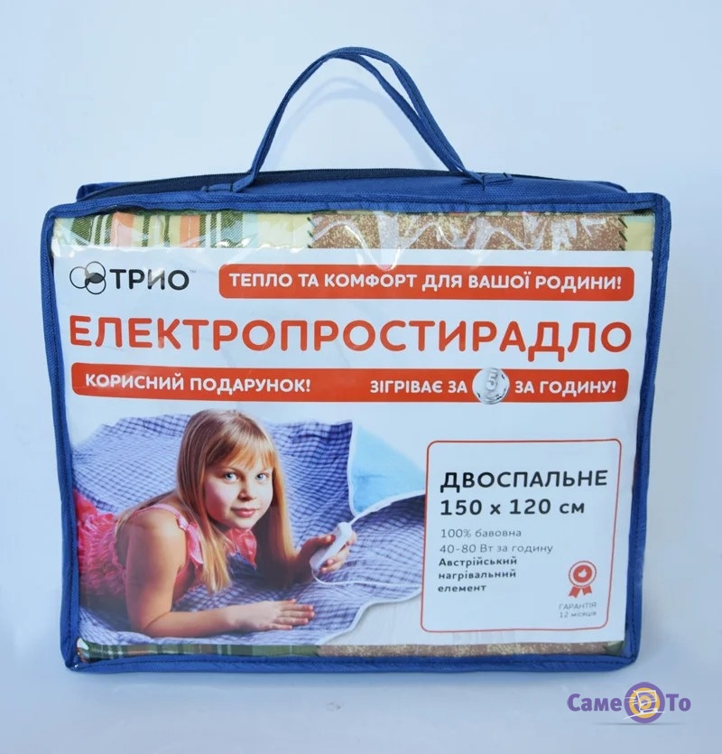 Електропростирадло двомісне Тріо має 2 режими роботи, потужністю 40 і 80 ват, діапазон температури нагрівання - 35 - 55 ° C. Включається в мережу адаптером живлення 220V / 50Hz з довгою кабелю - 1,5 м.