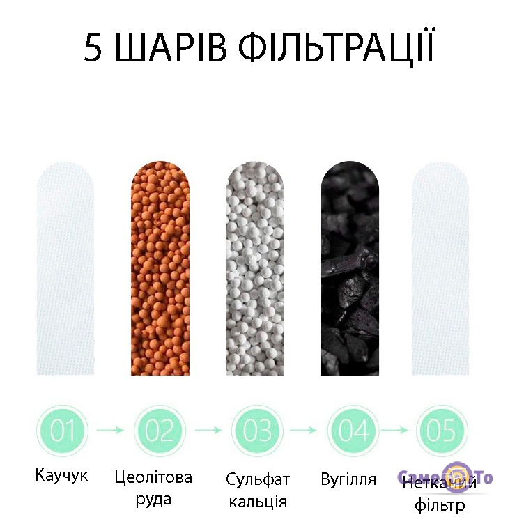 Фільтр для води у квартиру виготовлений із пластику та силікону, також до складу входять: природна цеолітова руда, сульфат кальцію, неткані фільтри, коксове активоване вугілля. Колір виробу: синій. Швидкість очищення води = 6л/хв. При першому використанні варто звернути увагу на колір води. Вона може мати трохи темний відтінок, але в цьому нічого страшного. Просто залиште відкритим кран на кілька хвилин, щоб запустити роботу фільтра. Не варто фільтрувати воду, якщо температура становить понад 50°С.