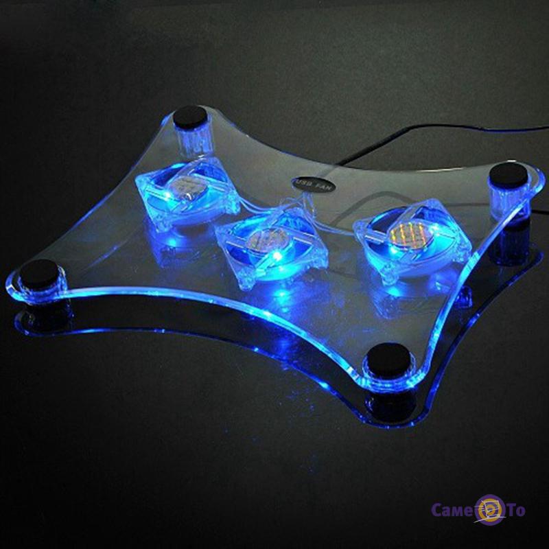 Прозора охолоджуюча підставка під ноутбук RX-830 виконана з гідного матеріалу - акрилу. Вона вміщує три вентилятора, які обертаються зі швидкістю до 2800 об / хв. Вентилятори доповнені підсвічуванням, що робить аксесуар не тільки корисним, але і красивим, помітним в темряві. Завдяки підсвічуванню в погано освітленому приміщенні краще видно букви і цифри на клавіатурі. Підставку RX-830 можна використовувати не тільки вдома, а й на роботі, під час виїзних конференцій, в подорожах або на відпочинку. Вона відрізняється легкою вагою і компактними розмірами. Підставка відповідає за охолодження ноутбука, тобто за захист його від перегріву, а значить і за стабільність його продуктивних функцій. Працює вона завдяки підзарядці за допомогою USB. Безпосередньо самі вентилятори абсолютно безшумні, тому не заважають зайвими звуками і не відволікають від трудового процесу. Для забезпечення максимально комфортної роботи за ноутбуком, розташованим на охолоджуючої підставці, внизу на ній є гумові ніжки. Завдяки їм аксесуар не ковзає по поверхні робочого місця.