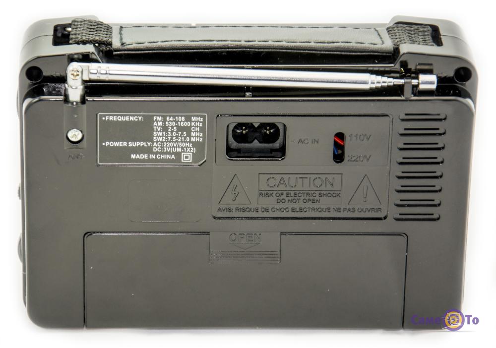• Діапазони: AM: 530-1600 кГц; FM: 64-108 МГц; TV: 2-5; SW1: 5,8 - 7,5 МГц; SW2: 8,8-12,3 МГц;
