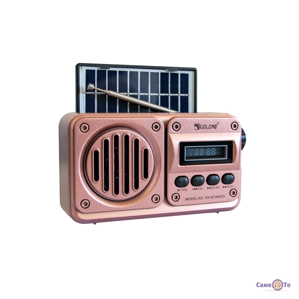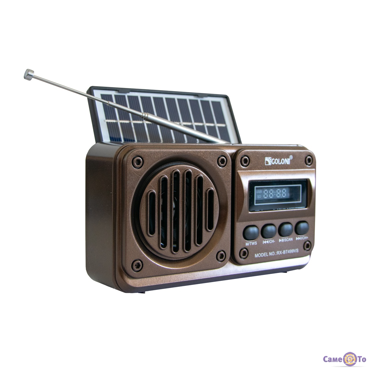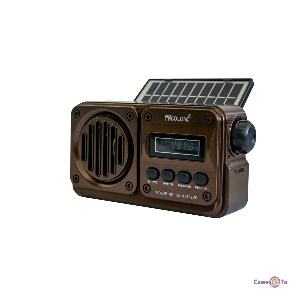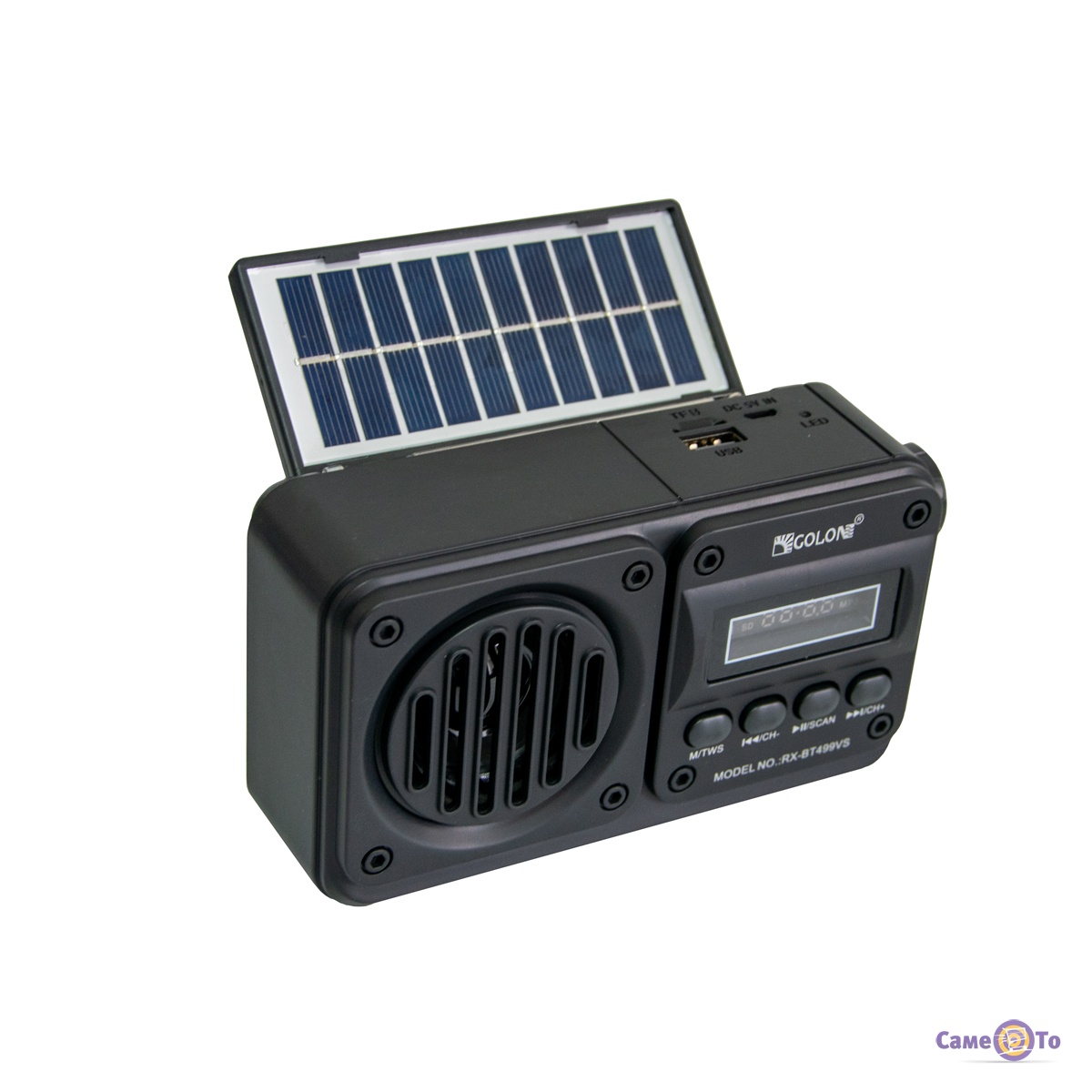Golon RX-499VS підтримує FM-радіо, а також відтворення музики з USB-накопичувачів і TF-карт, що розширює його функціональність і дає змогу насолоджуватися музикою в будь-якому форматі. Вбудована сонячна батарея забезпечує автономну роботу пристрою, роблячи його екологічно чистим і економічним. Вбудований динамік забезпечує якісне звучання, а просте управління робить використання радіоприймача інтуїтивно зрозумілим.