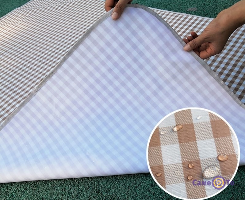 На нем без проблем разместиться вся семья, так как он очень вместительный, а его интересный дизайн сделает Ваш отдых более красочным, веселым и запоминающимся. Модель имеет два слоя материала. Первый – верхний, приятный на ощупь, а нижний слой водонепроницаемый, что позволяет разместить коврик на влажных участках земли: возле воды, на мокрой траве или листьях. В зависимости от разных ситуаций, коврик может послужить скатертью или покрывалом от внезапных погодных условий.