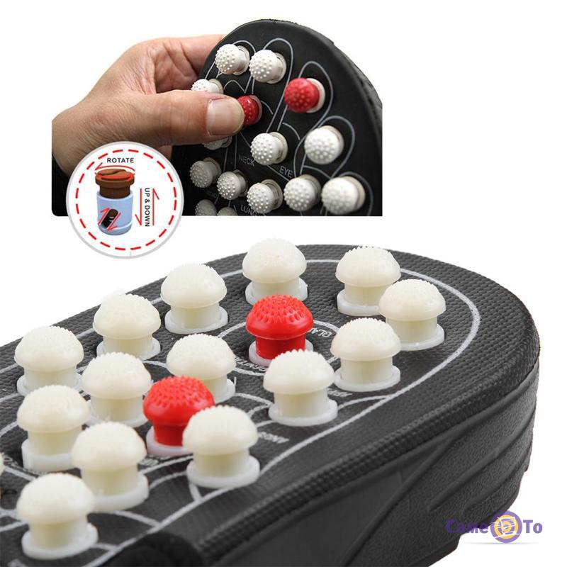 Рефлекторне взуття з функцією масажу рекомендується носити при артритах, п'яткових тріщинах, плоскостопості, варикозному розширенні вен, артрозі і порушеному кровообігу. Даний товар встиг себе зарекомендувати і отримати масу позитивних характеристик, як від медичних працівників, так і від тих, хто їх носив. При використанні рефлекторних тапочок організм гарантовано отримує ефективний вплив. Рефлекторні масажні тапочки можна брати на відпочинок, надягати в басейн або ходити в них по будинку. Вони легко миються за допомогою звичайної води. Підібрати розмір масажних тапочок можна, керуючись таблицею.