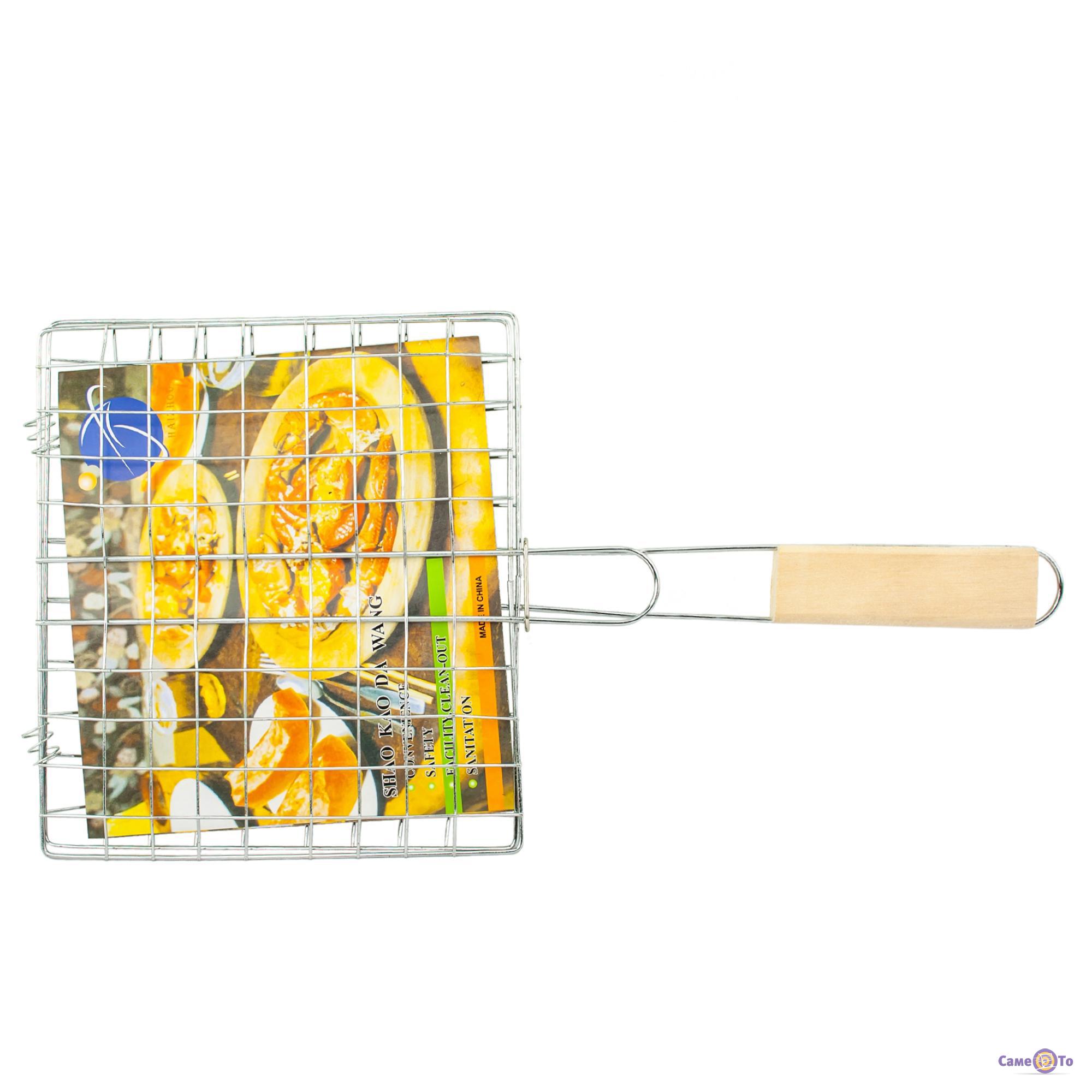 Решітка для гриля зроблена з міцного жаростійкого металу. Вона не розжарюється і не деформується, навіть якщо довго знаходиться на відкритому полум'ї. Кришка решітки фіксується спеціальним металевим кільцем, тому їжу можна вільно перевертати, тримаючи за зручну дерев'яну ручку.