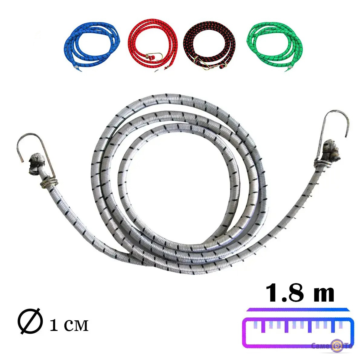 Кріпиться гумка на багажник, але також вона може використовуватися як гумка на кермо велосипеда, дивлячись, де і що вам необхідно прив'язати. Дана гумка для багажника велосипеда має практичну довжину - 1,8 м, вона виготовлена з еластичного матеріалу, тому дуже добре тягнеться. Крім того, це багажна гумка з гачками, за допомогою яких її можна зачепити за раму або безпосередньо за сам багажник. Виріб міцний і прослужить своєму власнику протягом тривалого часу.