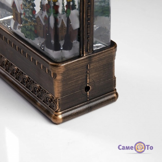 Корпус виконаний із міцного пластику у вінтажному дизайні, завдяки чому ліхтар виглядає елегантно та гармонійно вписується як у класичне, так і сучасне оформлення. Компактні розміри (21 × 11 × 6 см) дозволяють розмістити його на полиці, підвіконні чи святковому столі — всюди, де хочеться додати трохи різдвяного затишку.