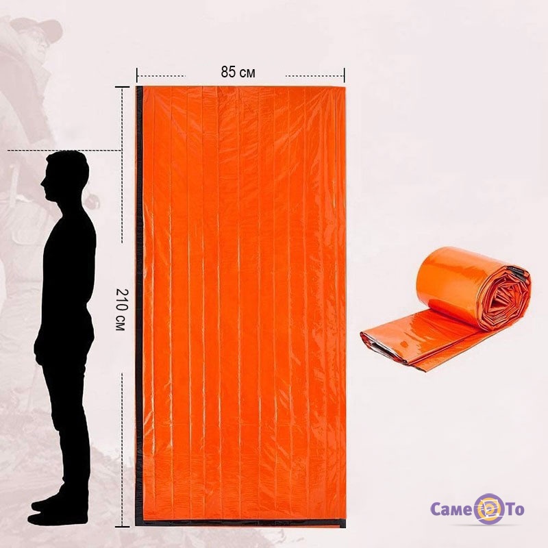 Помаранчевий аварійний спальний мішок "Emergency bag" розміром 210х85 см - це надійний засіб, який може врятувати життя в екстремальних ситуаціях.