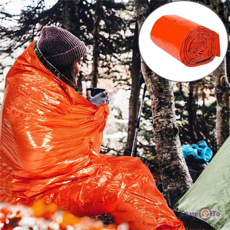 Помаранчевий аварійний спальний мішок "Emergency bag" розміром 210х85 см - це надійний засіб, який може врятувати життя в екстремальних ситуаціях.