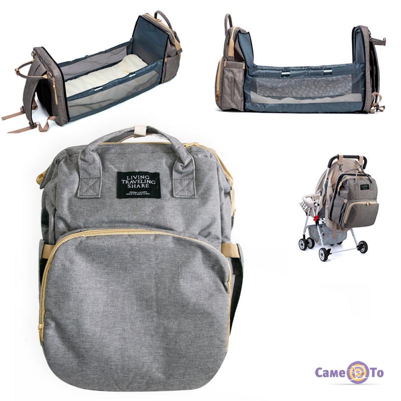 Living traveling share сумка – это настоящее спасение для новоиспеченной мамы. В ней предусмотрено несколько отделений для хранения самого ценного и возможность трансформации в кроватку. В комплект входит матрасик с бортиками, складные опоры для каркаса и тент, защищающий от солнечных лучей.