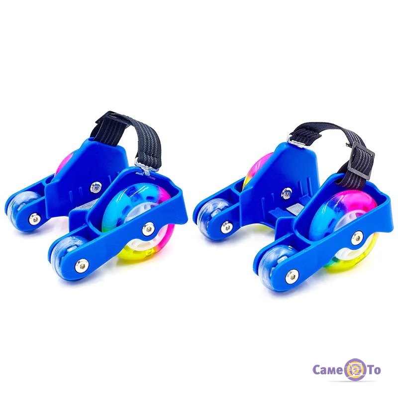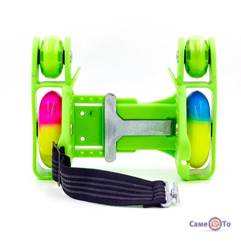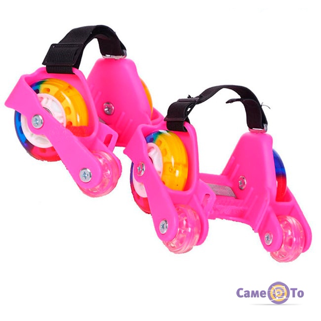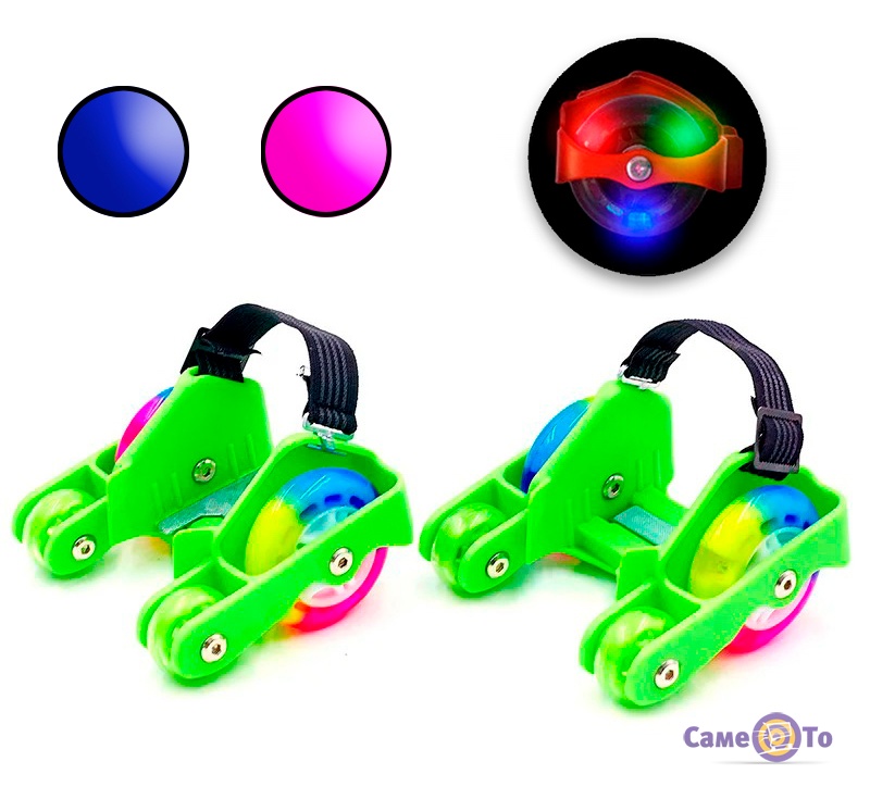 Поліуретанові колеса витримують будь-які навантаження - потрібно лише вибирати рівну поверхню для катання. Шпори ролики використовують ремінь з металевим гачком для фіксації конструкції на одному місці. До того ж катання на подібних роликах буде не тільки цікавим для дитини, але і видовищним для всіх інших - кожна пара оснащена світлодіодами, які починають переливатися різними кольорами під час руху. Особливо гостро це виглядає в темряві, коли на вулиці ще не включені ліхтарі, але вже сонце майже зайшло.