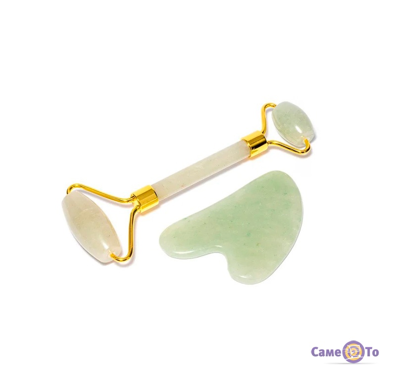 Роликовий масажер для обличчя + скребок гуаша з нефриту (55802)