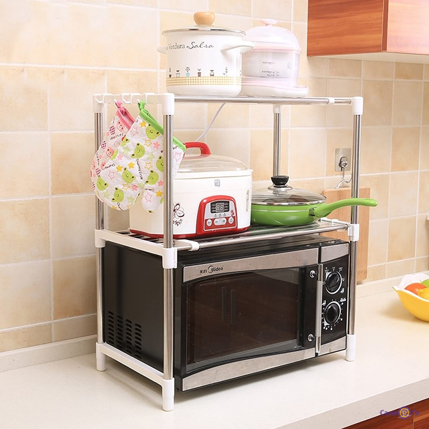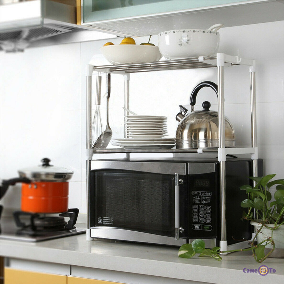 Підходить для мікрохвильової печі, а також для зберігання дрібних домашніх речей. Дизайн створений стильним і універсальним. Каркас міцний тому підходить для великих і невеликих мікрохвильовок. На другій полиці ви можете поставити іншу невелику техніку для кухні також будь-які баночки, наприклад соки, соуси, пляшечки, судочках і багато іншого.