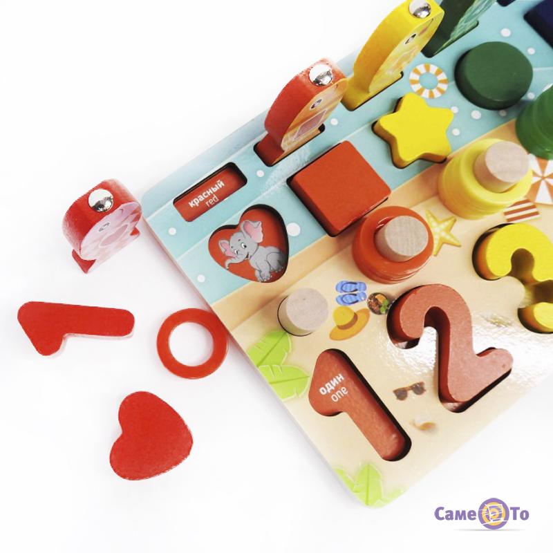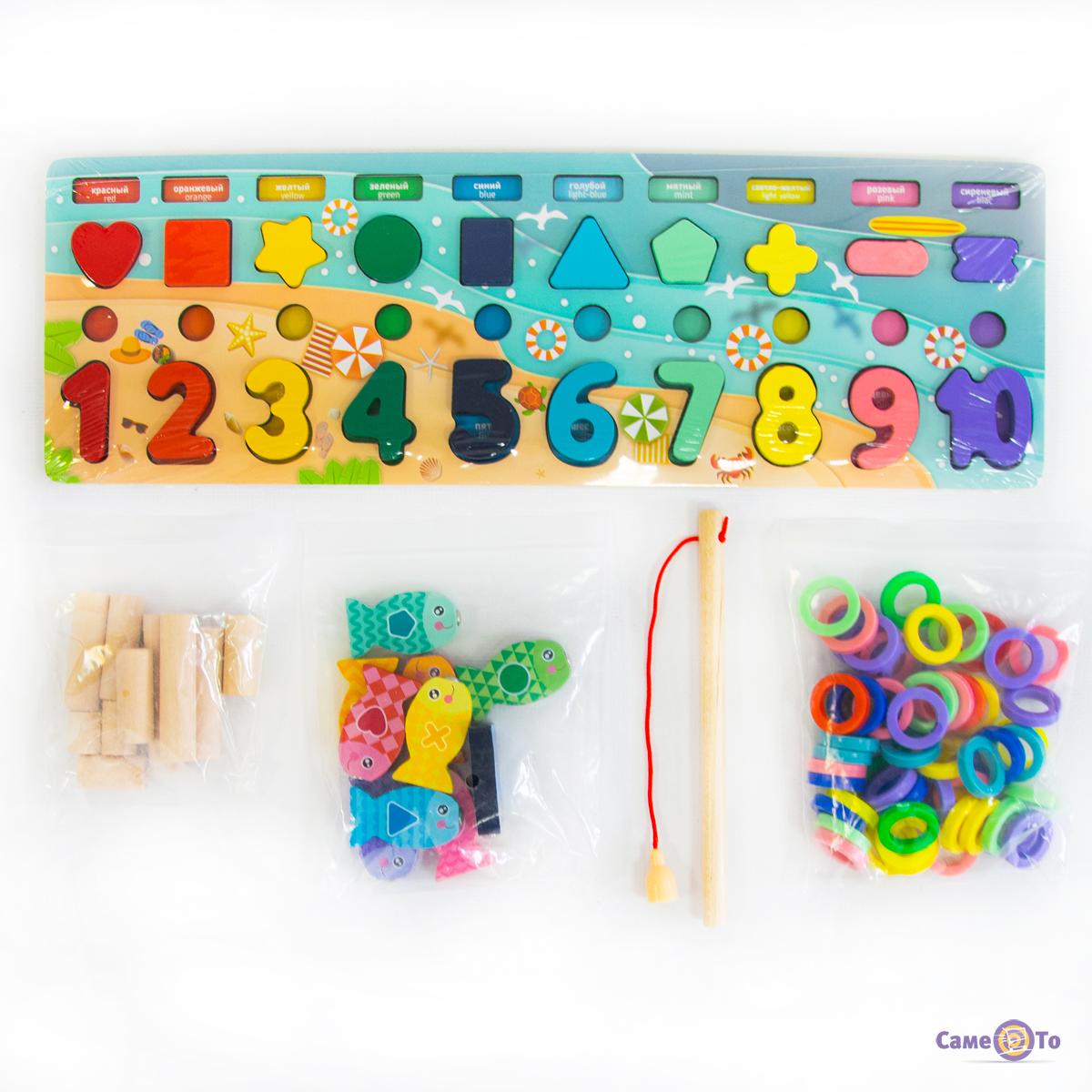 Перед нами дерев'яні іграшки, які виготовлені із нетоксичного натурального матеріалу. Вони цілком безпечні для малюків. Така розвиваюшка для дітей підходить і для прихильників класичної системи розвитку діток, і для шанувальників школи монтесорі. Дерев'яні розвиваючі іграшки в наборі представлені з таких деталей як кілочки, магнітна рибалка, сортер з різних геометричних фігур тощо. Це іграшки з дерева, з якими малюк однозначно не буде нудьгувати.