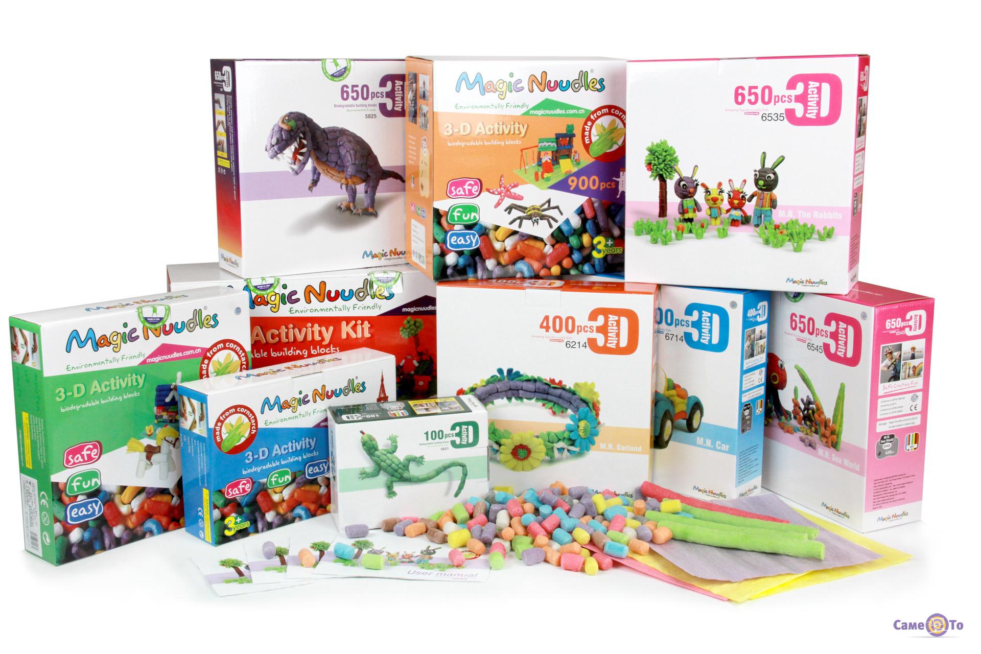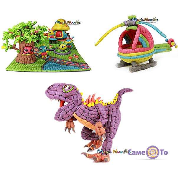 Деталі конструктора Magic Nuudles зроблені за принципом всім відомих кукурудзяних паличок. Вони складаються з кукурудзяного крохмалю і харчових барвників. Варто зауважити, що в склад не входять речовини, які можуть завдати шкоди здоров'ю дитини. До того ж палички м'які, легкі і ними просто неможливо поранитися. Конструктором Magic Nuudles можуть грати діти віком від трьох років і більше. Він буде однаково цікавий хлопчикам і дівчаткам.