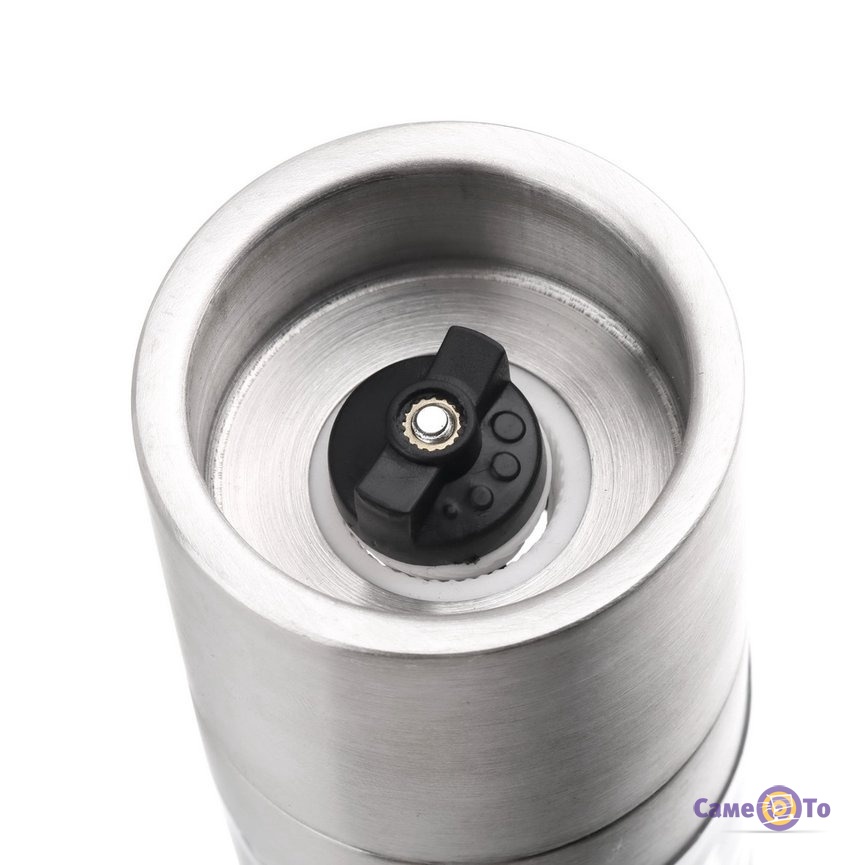 Мельница для соли и перца изготовленная из нержавеющей стали с керамическим механизмом. С лёгкостью можно мыть в посудомоечной машине. Сохраняет запах и вкус специй не дает им выветрится. В работе мельницу для перца можно самостоятельно регулировать в степенях измельчения. Мельница имеет керамическую систему, что позволяет быть ей долговечной. Лезвия у мельниц острые и хорошо справляются с крупной солью и перцем.