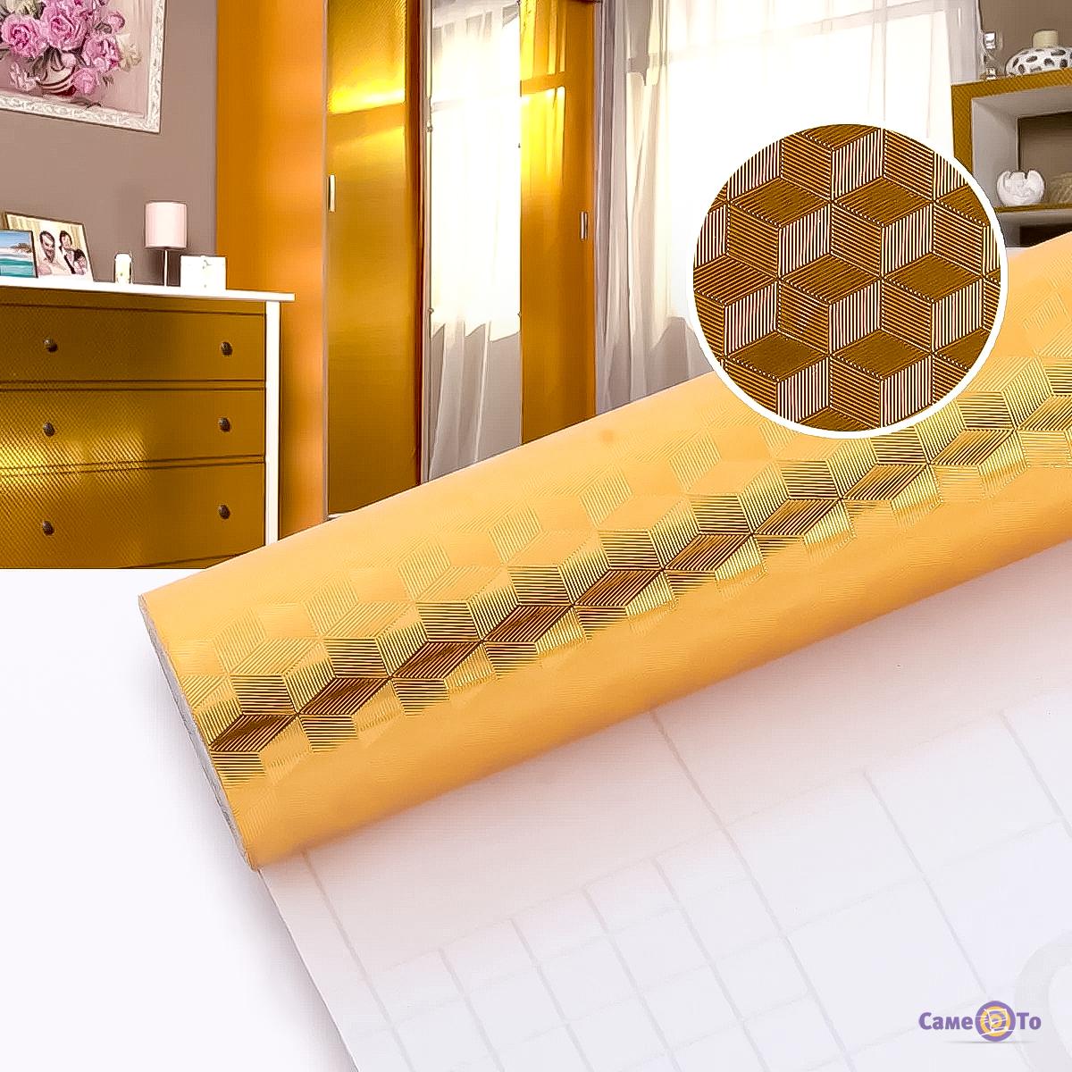 Самоклеюча плівка на стіл має сріблясте забарвлення у стилі абстракції. Зроблена з полівінілхориду, тому володіє стійкістю до різних механічних та хімічних впливів на її поверхню. Самоклейка для стін поставляється в рулонах. Її довжина – 3 м, а ширина – 0,6 м.