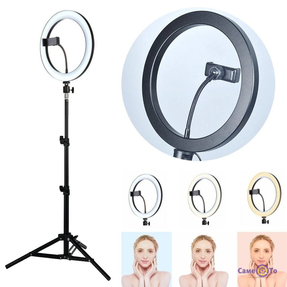 Встановлюється світлодіодне кільце для Селфі на самий звичайний штатив, так що з цим не повинні виникнути проблеми у того, хто займається фотографією. Світло кріпиться на спеціальну кульову головку, яку можна обертати в різні боки, щоб направити потік світла в потрібне русло і створити освітлення.