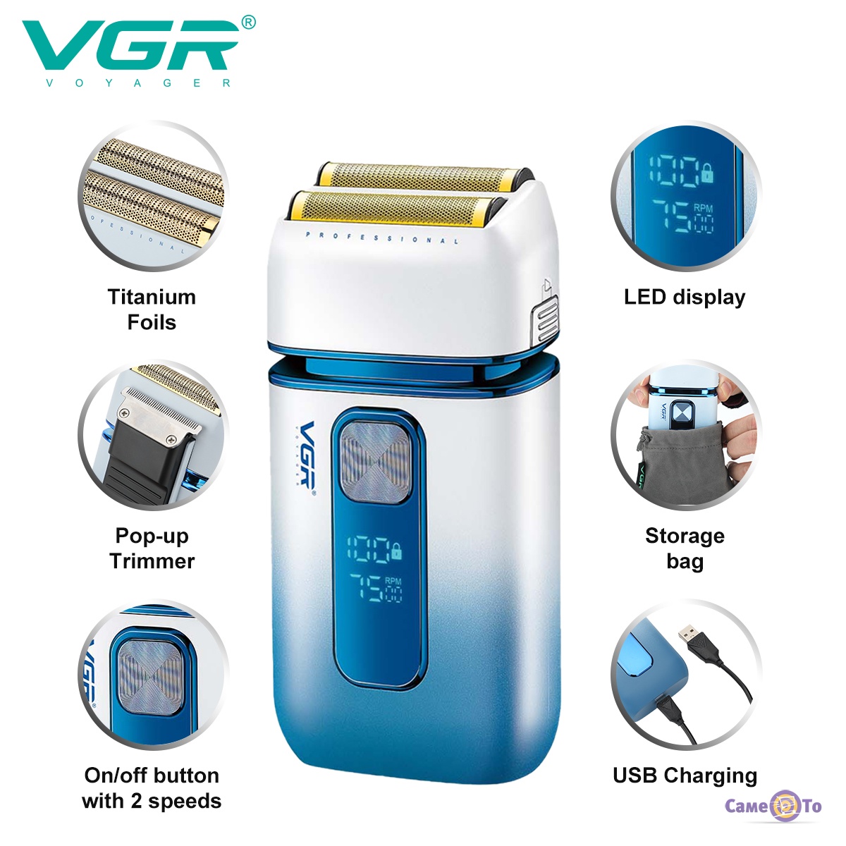 Шейвер VGR V-362 Синьо-чорний – це універсальна аккумуляторна бритва для обличчя, яка також виконує функції машинки для стрижки та тримера.