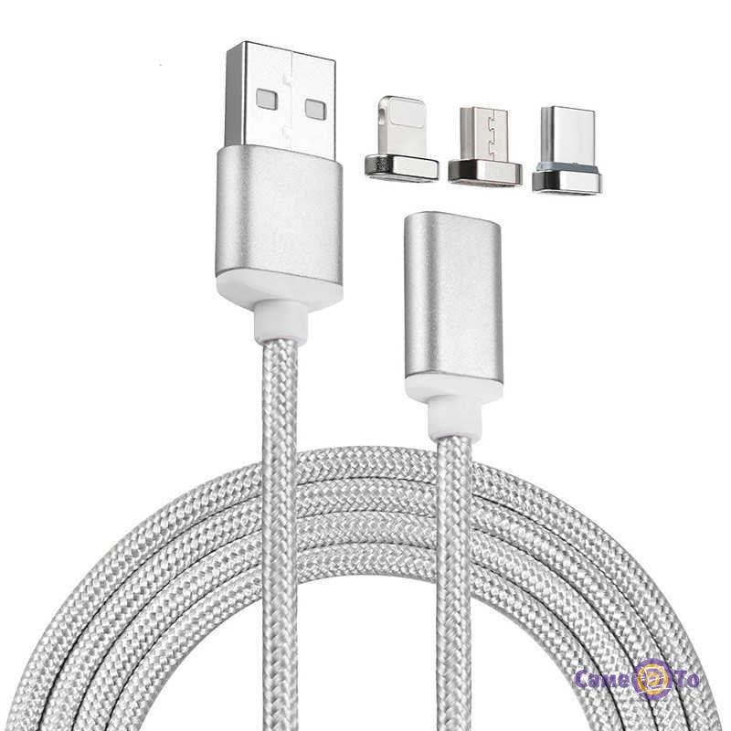 Магнітний шнур сріблястого кольору. Пластиковий дріт довжиною 97 см. Зручна магнітна зарядка підходить для телефонів марки iPhone, починаючи з моделі iPhone 5, а також для гаджетів на базі Android. Країна-виробник магнітного кабелю для зарядки - Китай. Міцним дротом зручно користуватися в дорозі, його швидко прикріпити всього однією рукою. Шнур для зарядки не пошкоджує роз'єм телефону, перехідник для зарядки захищає пристрій від потрапляння частинок пилу і бруду.