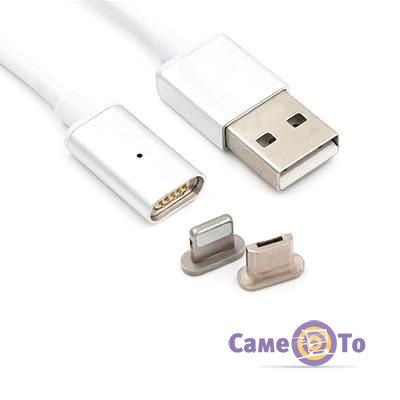 Магнітний шнур сріблястого кольору. Пластиковий дріт довжиною 97 см. Зручна магнітна зарядка підходить для телефонів марки iPhone, починаючи з моделі iPhone 5, а також для гаджетів на базі Android. Країна-виробник магнітного кабелю для зарядки - Китай. Міцним дротом зручно користуватися в дорозі, його швидко прикріпити всього однією рукою. Шнур для зарядки не пошкоджує роз'єм телефону, перехідник для зарядки захищає пристрій від потрапляння частинок пилу і бруду.