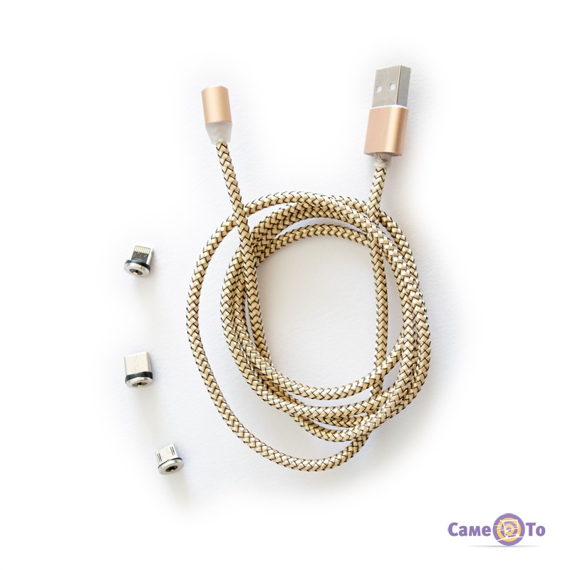 Магнитный кабель для зарядки M3 1000mm GOLD (Micro-USB, Lightning, Type-C)