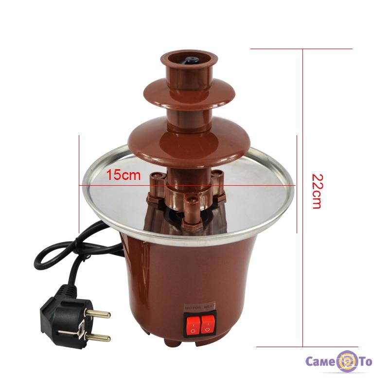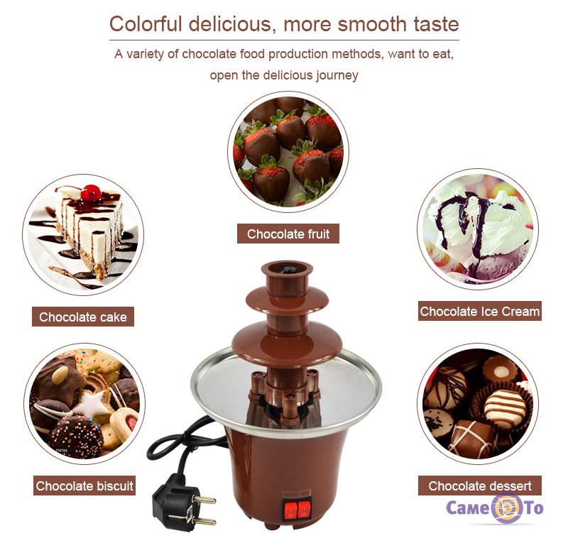 Фондю шоколадний фонтан дозволить пригостити смачним і оригінальним ласощами відразу двадцять ваших гостей. Він стане головною розвагою на дитячому святі, родзинкою дружньої вечірки, дня народження, весілля або світського вечора.
