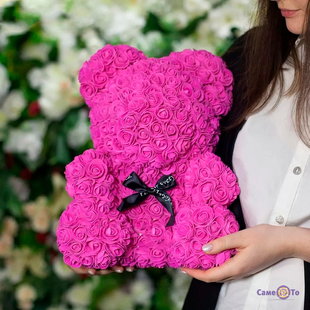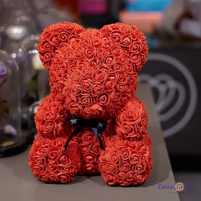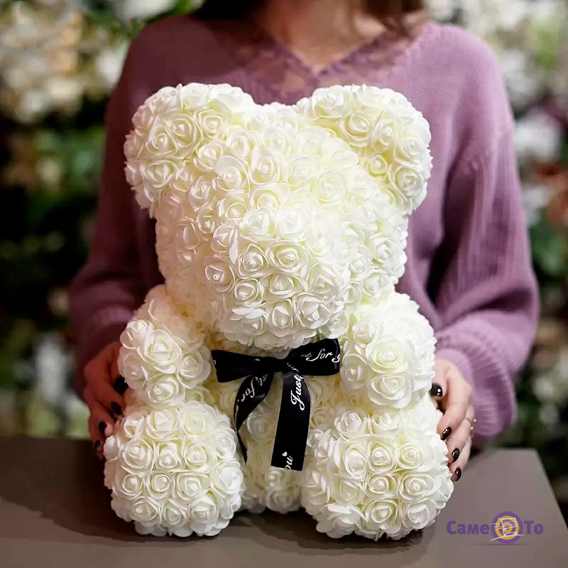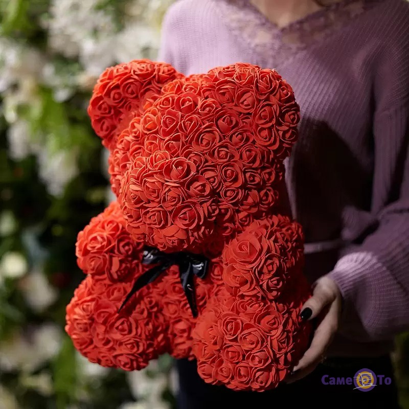 Ведмідь з троянд був виготовлений вручну. Тканина приємна на дотик, висока якість матеріалу, невибаглива у догляді. Мішка з троянд прикрасить будь-яку кімнату. Мішка з 3д троянд - це універсальний декор на будь-які свята, він може прикрасити весільний стіл або стати прикрасою банкетного залу. Ведмежата з троянд виготовляються з екологічно чистого матеріалу, може стати альтернативою букету з троянд.