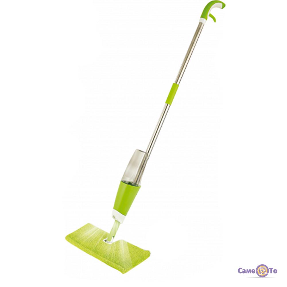 Швабра Спрей Моп Делюкс підходить для поверхонь будь-якого типу, а завдяки вбудованому водному розпилювачу вона відмиває підлогу від забруднень миттєво. У чому ж особливості цього оригінального аксесуара? По-перше, Вам не знадобиться відро з водою, біля основи швабри є спеціальна ємність із пластику, в яку можна набирати воду або рідину з миючим засобом для миття підлоги. Для того щоб розприскати на підлогу необхідну кількість води, Вам просто треба натиснути на важіль біля ручки. По-друге, швабра відмінно пробирається в важкодоступні місця завдяки шарнірному з'єднанню конструкції. По-третє, миюча частина швабри виконана з мікрофібри і є знімною, її легко можна від'єднати і випрати в машинці. Ну а найголовніше, тепер Ви забудете про те, що треба присідати, стояти на колінах, коли миєш підлогу, адже керувати шваброю з розпилювачем зручно стоячи, не перевантажуючи свій опорно-руховий апарат.