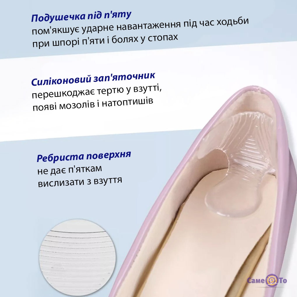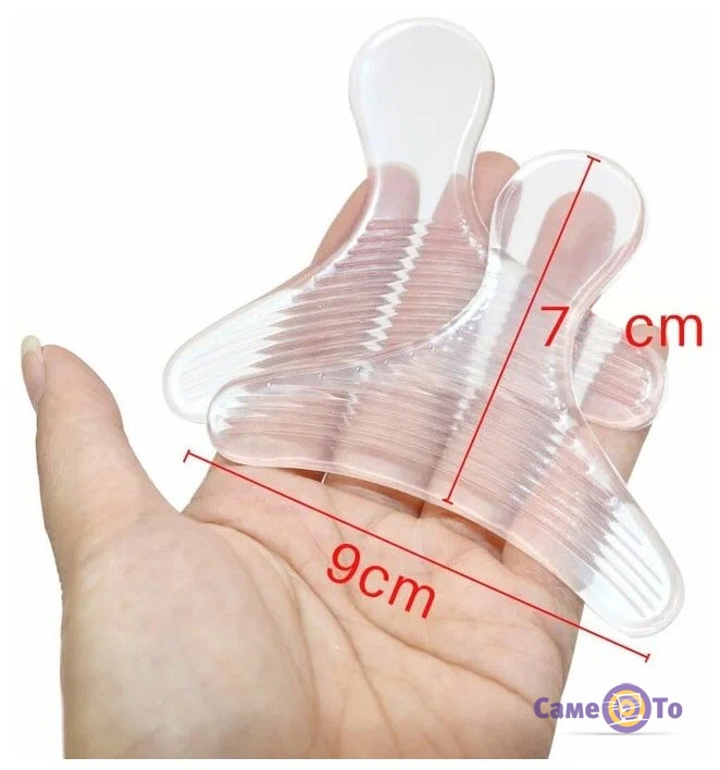 Устілки під п'яту виконані в одному універсальному розмірі, тому вони підійдуть кожному. Якщо ви хвилюєтеся, що при ходьбі силіконові вкладиші у взуття ковзатимуть, то не варто. Вони мають спеціальну ребристу поверхню.