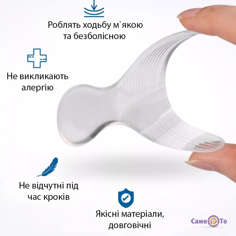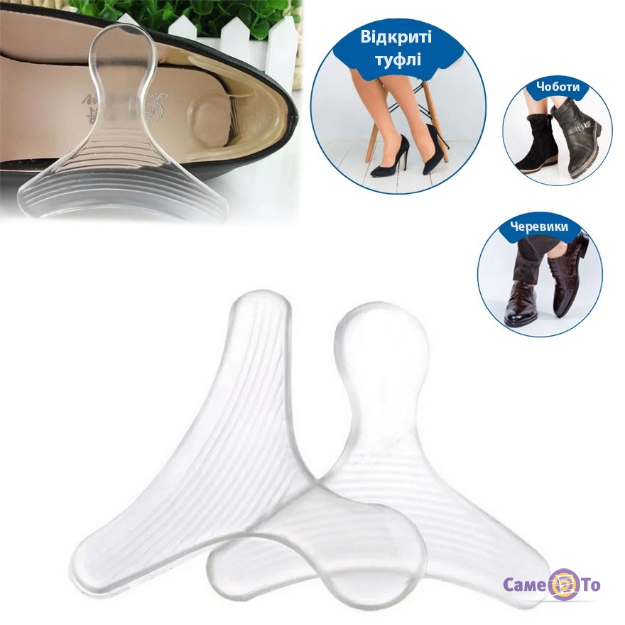 Це вкладиші силіконові, вони надійні та водночас м'які. Крім того, ці силіконові устілки під п'яту прозорі, вони непомітні для оточуючих, і ви зможете їх використовувати як у повсякденному взутті, так і у святкових туфлях.