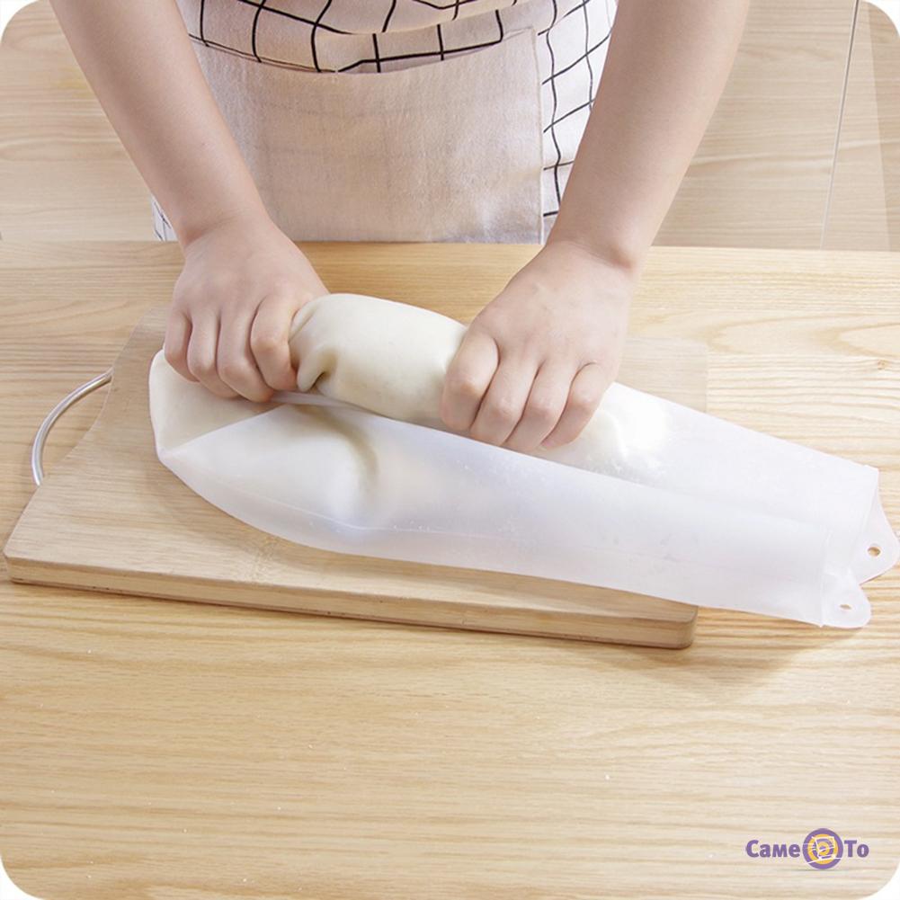 Внутри мешка имеется специальное покрытие, благодаря которому тесто не прилипает. Поэтому Вы с лёгкостью извлечёте готовый продукт при достижении им нужной консистенции. После использования мешок просто промывается тёплой водой. При необходимости можно использовать моющие средства. Силиконовый мешок для замешивания теста предназначен для многоразового использования и после высыхания снова будет готов к применению. При должном обращении, такой мешочек будет служить Вам годами.