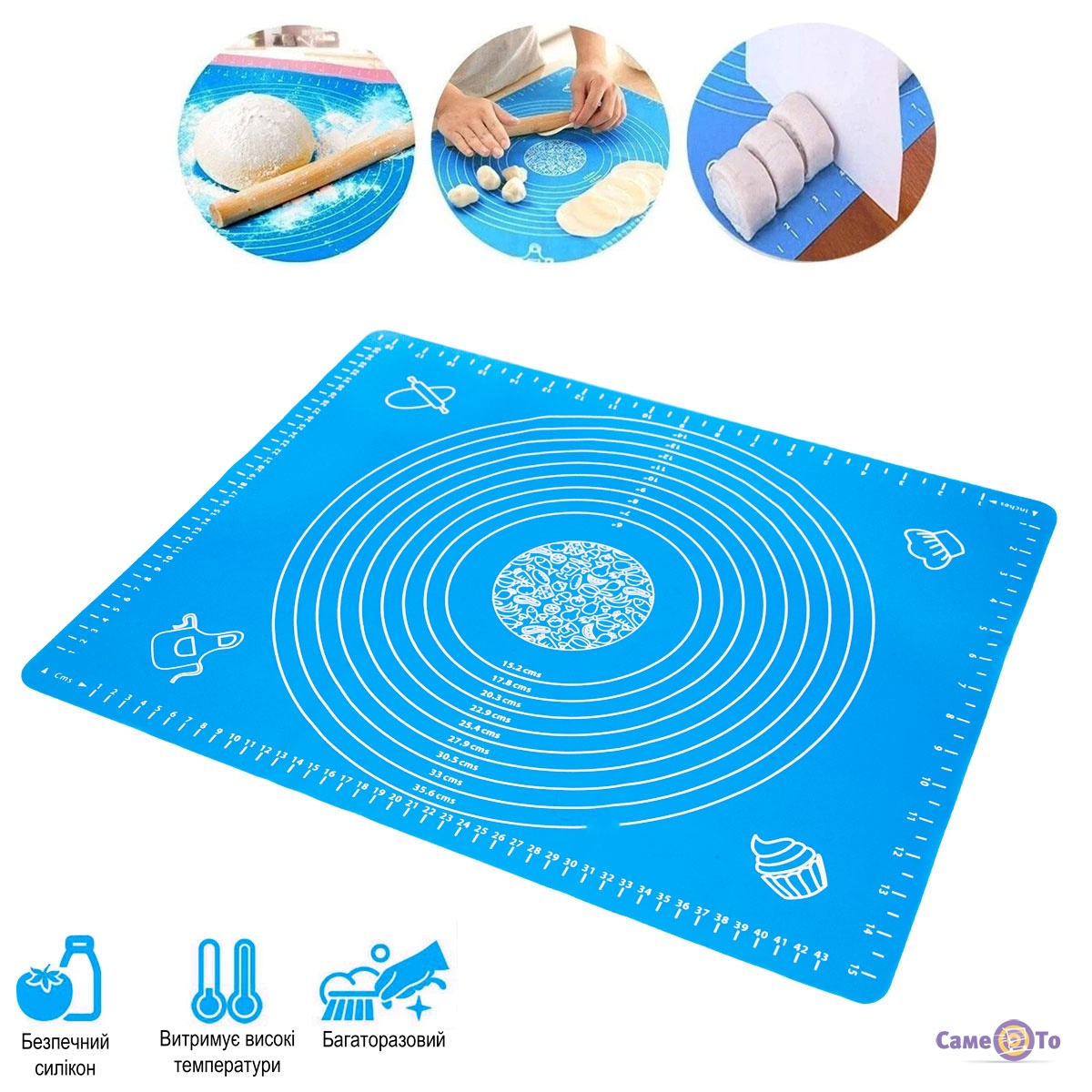 Силиконовый коврик для раскатки теста и выпечки 40х50см