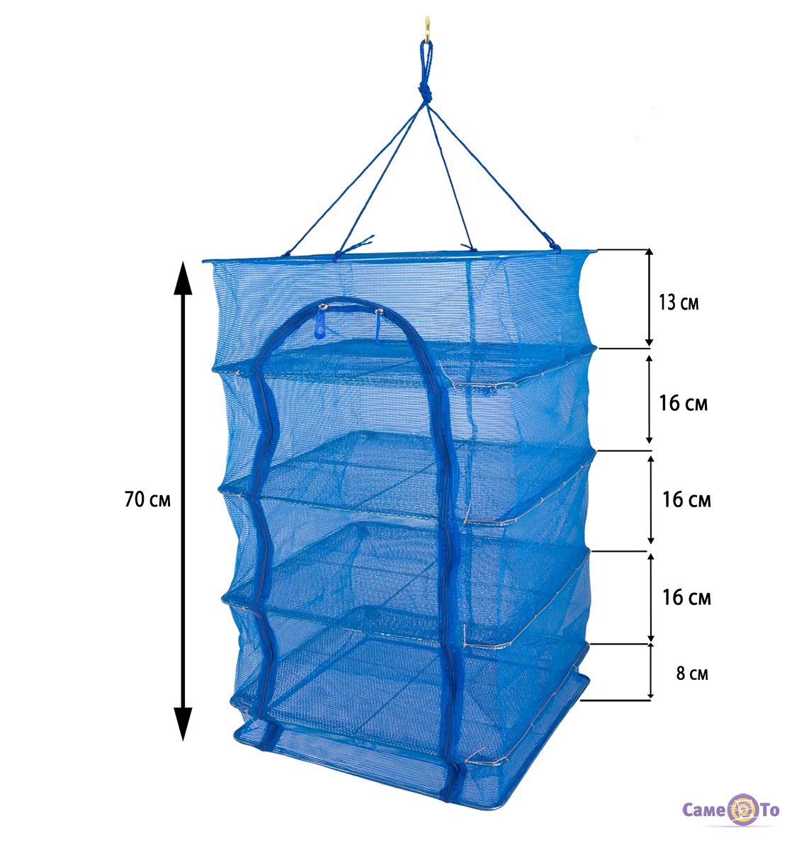 Іншими словами, це справжня знахідка для господинь, тому що з її допомогою можна зробити заготовки сушених і в'ялених інгредієнтів для приготування улюблених страв на цілий рік вперед.Дана сітка для сушіння має 4 полки, її можна підвісити до будь-якого дерева або стовпа. Якщо у вас в родині є рибалка, рекомендуємо купити сітку для сушіння риби, і вдома завжди будуть запаси в'яленої або сушеної тарані власного приготування. Більш того, виріб має продуманий дизайн, і всі продукти під час сушіння будуть надійно захищені від комах.