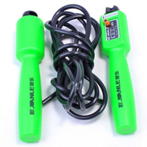 Скакалка з лічильником стрибків оснащена спеціальним датчиком, який фіксує кількість підскакувань. Прилад вбудований в ручку і приводиться в дію за допомогою однієї кнопки. Ручка має ергономічну форму і датчик не буде заважати вам під час занять. Самі ручки виготовлені з пластику. Шнур зроблений з міцної гуми. Діаметр джгута - 5мм. Довжина всього снаряда становить 2,8 метрів і він може використовуватися навіть високими людьми.