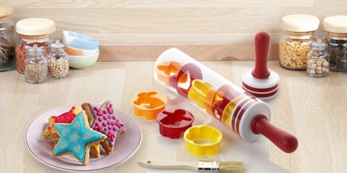 Оригінальний яскравий дизайн перетворює звичайний кухонний інструмент в оригінальний аксесуар. Яскраві кольори піднімають настрій. І працювати з таким інструментом завжди приємно. Розгортати тісто такою скалочкою дуже подобається дітям. А якщо ви дозволите їм видавлювати з розкачаного тіста печиво - вони будуть просто в захваті. Адже формочки зроблені у вигляді найулюбленіших і популярних серед малюків фігурок: