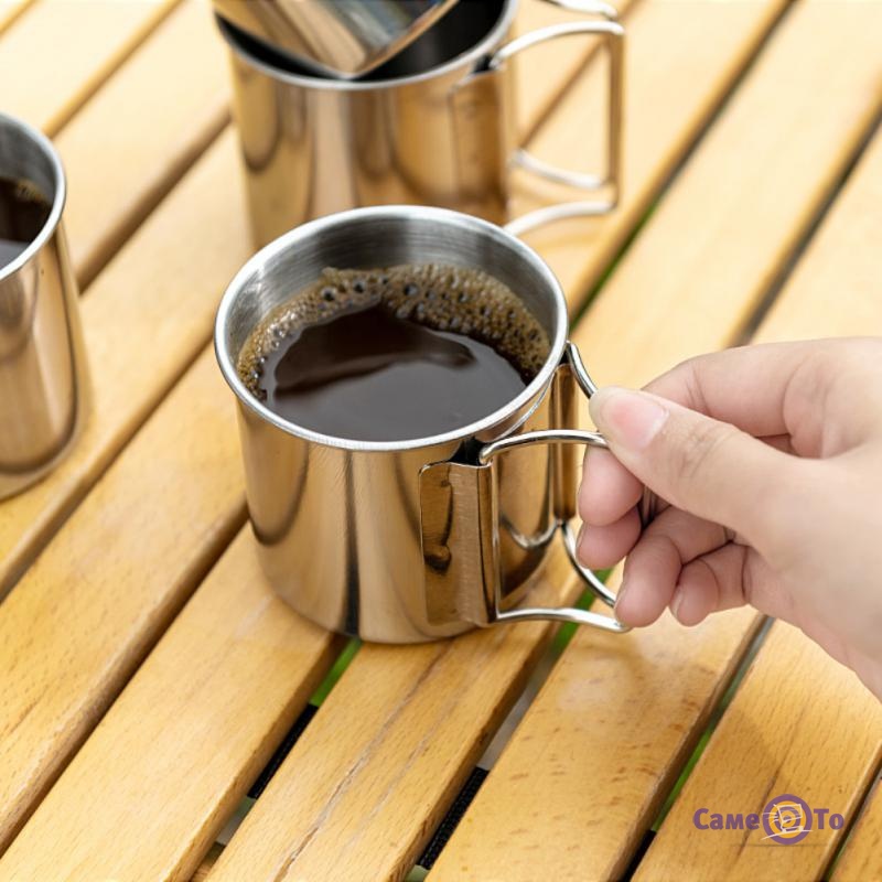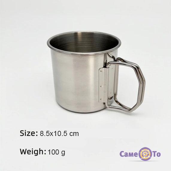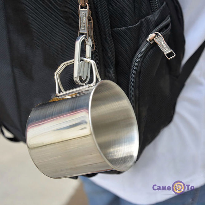 Щоб у вас був на сніданок кухоль чаю в поході, вам не знадобиться більше посуду. Цей залізний кухоль не боїться відкритого вогню, і воду можна підігріти прямо в ній. Важить цей кухоль металевий всього 100 г, його можна прикріпити до рюкзака за допомогою ланцюга або прищіпки. А ще перед нами чашка 350 мл такого обсягу достатньо, щоб сповна насолодитися улюбленим напоєм на природі.