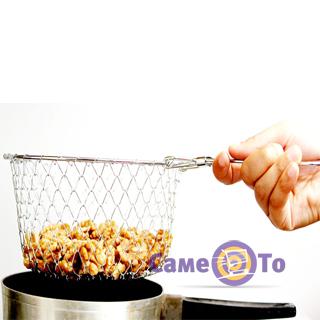 У Вас є друшляк? Як часто Ви використовуєте його при готуванні на кухні, забудьте про нього, він вам більше не знадобиться, так як сітка Chef Basket стане його надійної заміною, просто відігніть ручки сітки вниз.
