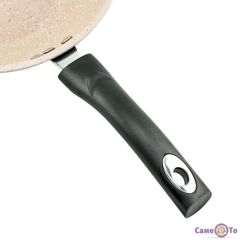 Але на цьому переваги даної сковороди не закінчуються. Вона має ще одну дуже важливу особливість - керамічне антипригарне покриття. Саме кераміка найстійкіша і якісна серед усіх антипригарних покриттів, що існують на сьогоднішній день.