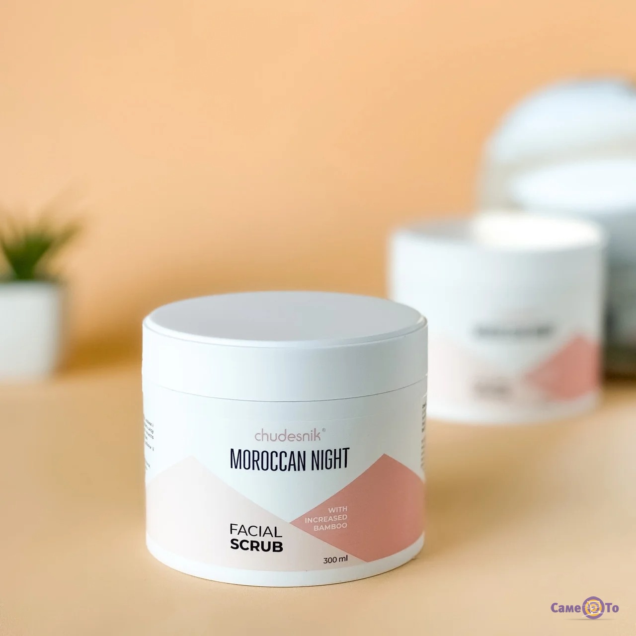 Бюджетний скраб для обличчя Moroccan Night Facial Scrub розроблений з урахуванням різних проблем шкірних покривів: сухість, лущення, втрата тургору, нерівний колір, чорні точки, чутливість, пігментація.